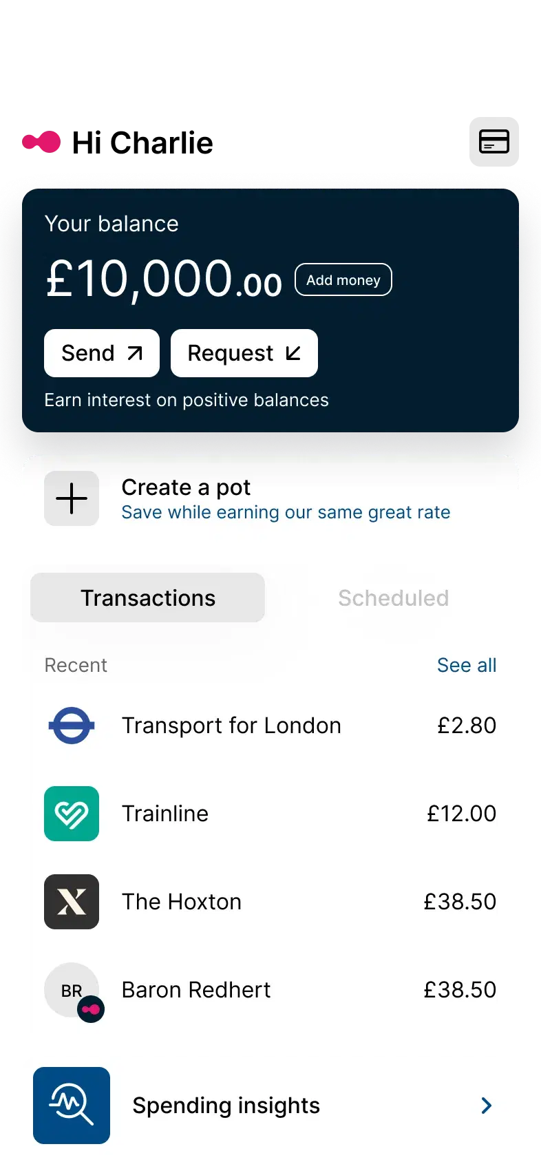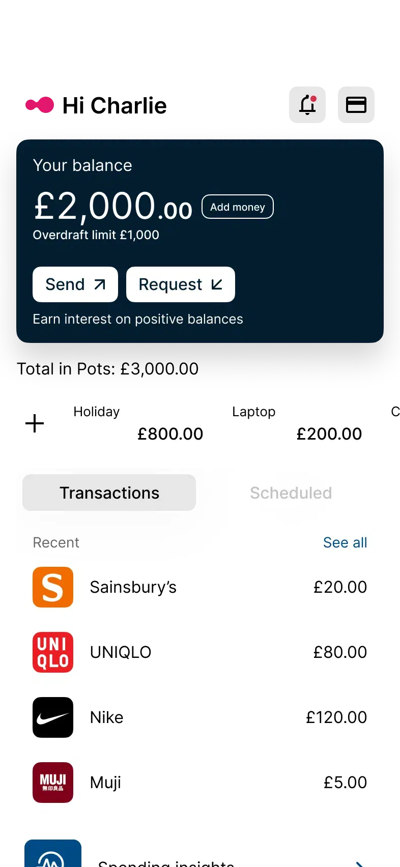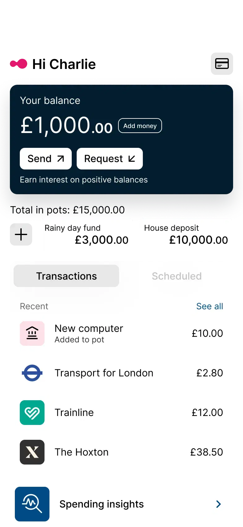 Pots help you separate your day-to-day spend from your savings and you still earn 2.65% AER on all of it.